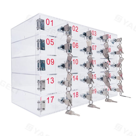 Sağlam şeffaf akrilikten üretilen bu dolap, cihazların kolayca tanımlanması için şeffaf bir görünürlük sunar; 20 kilitlenebilir bölmesi hırsızlığı önlemek için güvenli, ayrı ayrı depolama alanı sağlar ve çok yönlü tasarımı ofisler veya okullar gibi çeşitli ortamlara uygundur, bu da onu birden fazla mobil cihazı düzenlemek ve korumak için pratik bir çözüm haline getirir.