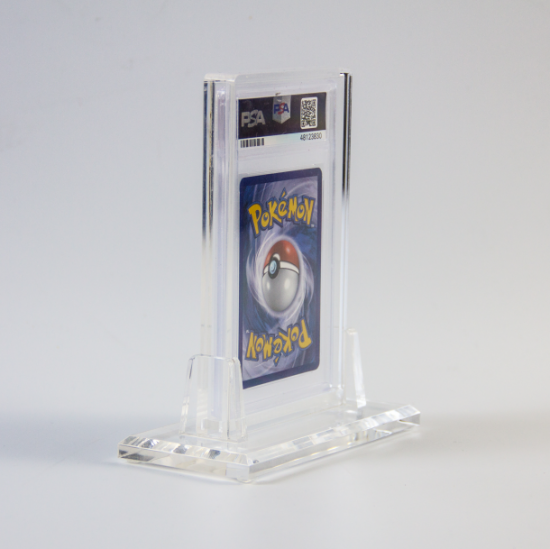 Dayanıklı, çizilmeye karşı dirençli akrilikten üretilen bu teşhir standı, derecelendirilmiş kart plakaları için uzun süreli destek ve koruma sağlar (plakanın kenarlarında oluşabilecek çizikleri veya küçük darbeleri önler); açılı tasarımı, düz saklama çözümlerinin aksine, kartın ön yüzünün (ve derecelendirme etiketinin) rahat bir görüş yüksekliğinden tamamen görünmesini sağlar. Şeffaf, minimalist yapısı, derecelendirilmiş karta odaklanmayı sağlarken, herhangi bir koleksiyon sergisine şık ve profesyonel bir görünüm kazandırır ve sağlam tabanı, düz olmayan yüzeylerde bile devrilmeyi önleyerek güvenilir ve göz alıcı bir sunum sağlar.