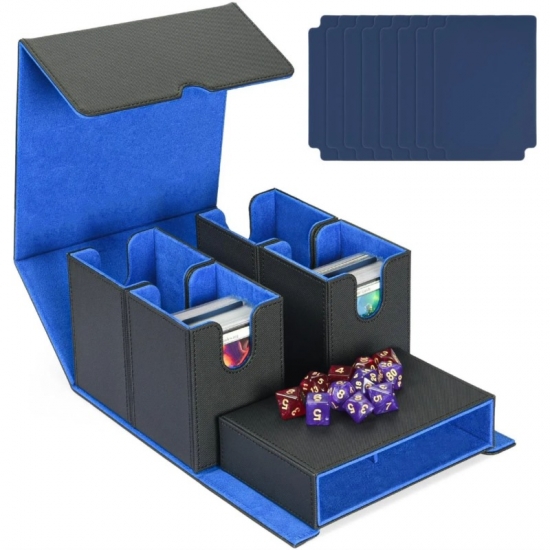 MTG YugiOh için Zar Tepsili Kart Destesi Saklama Kutusu, 5'i 1 Arada Deste Kasa Seti 400'den fazla Kollu Kart Tutar, Magic Commander TCG CCG Kartlarıyla Uyumlu Güçlü Mıknatıslı Kart Düzenleyici Kutusu