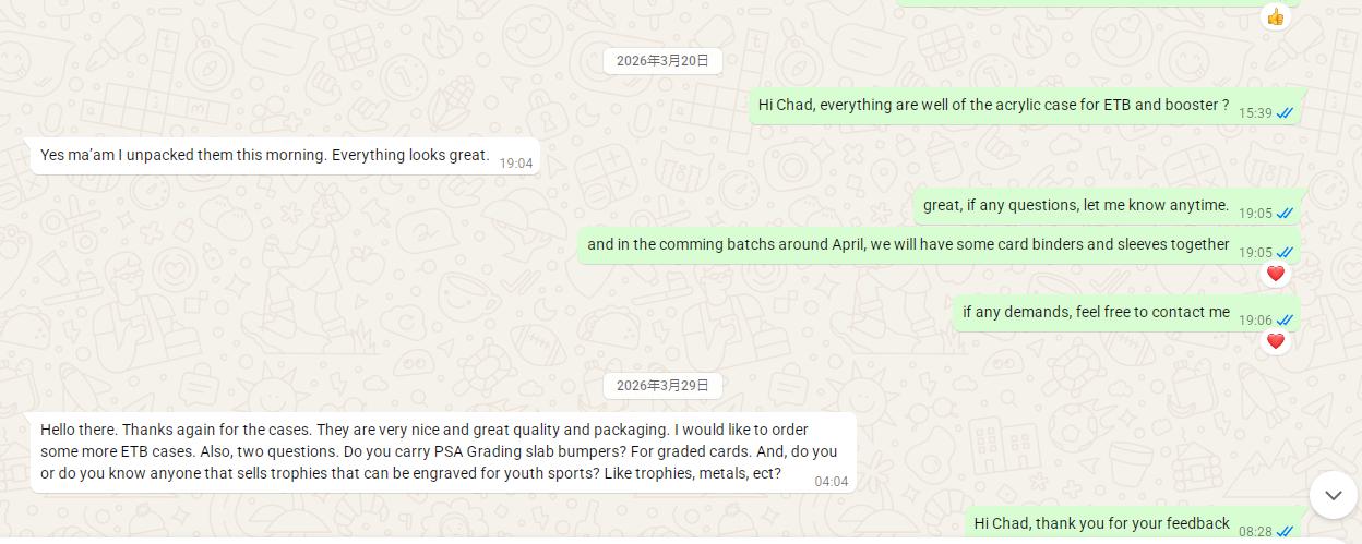 Çin'in önde gelen koleksiyon kartı aksesuar üreticilerinden biri olarak geniş çapta tanınan YAGELI, 27 yılı aşkın deneyime, 293.750 metrekarelik üretim tesisine, 500'den fazla kalifiye çalışana ve 88'den fazla ülkeye ihracata sahip profesyonel bir üreticidir. Şirket, premium kart tutucular, sert kart tutucular, derecelendirilmiş kart plakaları, klasörler, kılıflar, manyetik kart kutuları ve akrilik kart teşhir ürünlerine odaklanarak, küresel markalar için tam OEM ve ODM hizmetleri sunmaktadır.