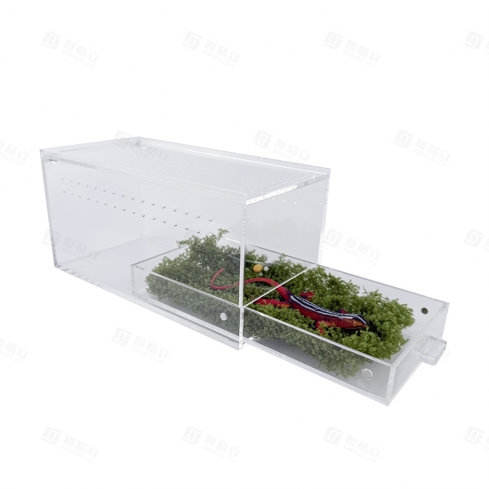 Bu kafes, küçük egzotik evcil hayvanlar için güvenli ve az bakım gerektiren bir yaşam alanı sunar: Sürgülü çekmece, altlık değişimini ve bölgesel temizliği hızlandırırken, havalandırmalı tasarım uygun nem ve hava akışını sağlar. Şeffaf duvarlar, evcil hayvanınızı sürekli olarak gözlemlemenizi sağlar ve UV ışınlarına dayanıklı malzeme hem kafesi hem de evcil hayvanınızı ışık hasarından korur.