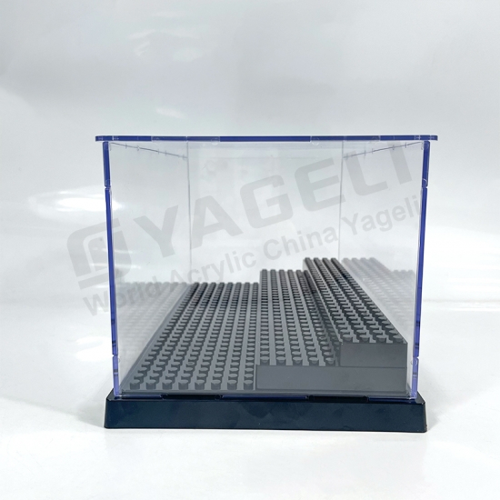 UV ışınlarına dayanıklı, elmas kenarlı akrilik PSA levha teşhir kutusu ve standı.